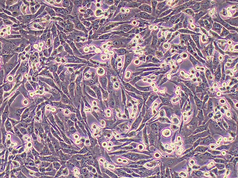 大部分贴壁细胞培养时都会有一些圆形透亮的细胞存在,也会有一些圆形细胞脱落悬浮的情况存在,这种主要是一些新增殖的细胞或由于局部空间不足被挤出的细胞,只要细胞持续增殖,都会有一些圆形细胞或脱落漂浮细胞,不影响细胞整体增殖和实验,保持正常换液、传代周期即可。细胞具体情况也可以参考细胞库不同细胞照片比对,大部分贴壁细胞都会有圆形细胞、脱落细胞、细胞内颗粒等情况。
