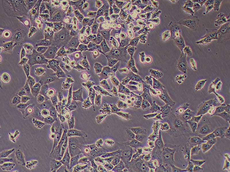 大部分贴壁细胞培养时都会有一些圆形透亮的细胞存在,也会有一些圆形细胞脱落悬浮的情况存在,这种主要是一些新增殖的细胞或由于局部空间不足被挤出的细胞,只要细胞持续增殖,都会有一些圆形细胞或脱落漂浮细胞,不影响细胞整体增殖和实验,保持正常换液、传代周期即可。细胞具体情况也可以参考细胞库不同细胞照片比对,大部分贴壁细胞都会有圆形细胞、脱落细胞、细胞内颗粒等情况。