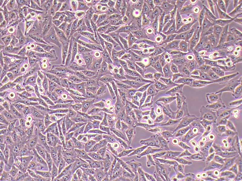大部分贴壁细胞培养时都会有一些圆形透亮的细胞存在,也会有一些圆形细胞脱落悬浮的情况存在,这种主要是一些新增殖的细胞或由于局部空间不足被挤出的细胞,只要细胞持续增殖,都会有一些圆形细胞或脱落漂浮细胞,不影响细胞整体增殖和实验,保持正常换液、传代周期即可。细胞具体情况也可以参考细胞库不同细胞照片比对,大部分贴壁细胞都会有圆形细胞、脱落细胞、细胞内颗粒等情况。