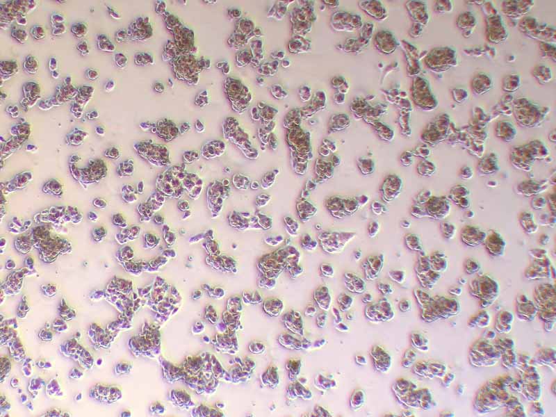 1.HEPG2-LUC人肝癌细胞-荧光素酶标记形态特点?Hep G2-LU细胞堆叠生长,Hep G2-LU细胞生长特性是紧密连接成片状从四周延展增殖,形成一座座的小岛状,细胞在增殖过程中可能会看到轻微的细胞堆积点,属于正常现象,所以消化所需时间较久,注意观察,等待细胞自然脱落即可,切勿拍打培养瓶或过度吹打细胞,避免细胞损伤。 2.Hep G2-LU细胞贴壁慢、漂浮细胞多?HEPG2-LUC人肝癌细胞-荧光素酶标记传代后会有许多簇状仍处于悬浮状态,这是正常现象,一般2-3天内会缓慢粘附于培养瓶缓慢延伸进行增殖。建议传代后2天内减少观察和移动细胞。 当冻存HEPG2-LUC人肝癌细胞-荧光素酶标记进行复苏时,通常会出现大量漂浮细胞不贴壁,属于正常情况,刚复苏的细胞比较脆弱,建议3 天不要干扰,如果3天后漂浮细胞还很多,且漂浮细胞透亮圆润,可以重新收集细胞1000rmp、离心4分钟接种到新的培养瓶。 必要时可以提高血清浓度至15%辅助HEPG2-LUC人肝癌细胞-荧光素酶标记更快贴壁增殖。 3.HEPG2-LUC人肝癌细胞-荧光素酶标记是不是比较不好消化,消化时间多长?HEPG2-LUC人肝癌细胞-荧光素酶标记培养箱5-6分钟左右,Hep G2-LUC细胞是成片长的,消化的时候不用完全单颗,有小团没事,会展开,但是不能太大团。 |
