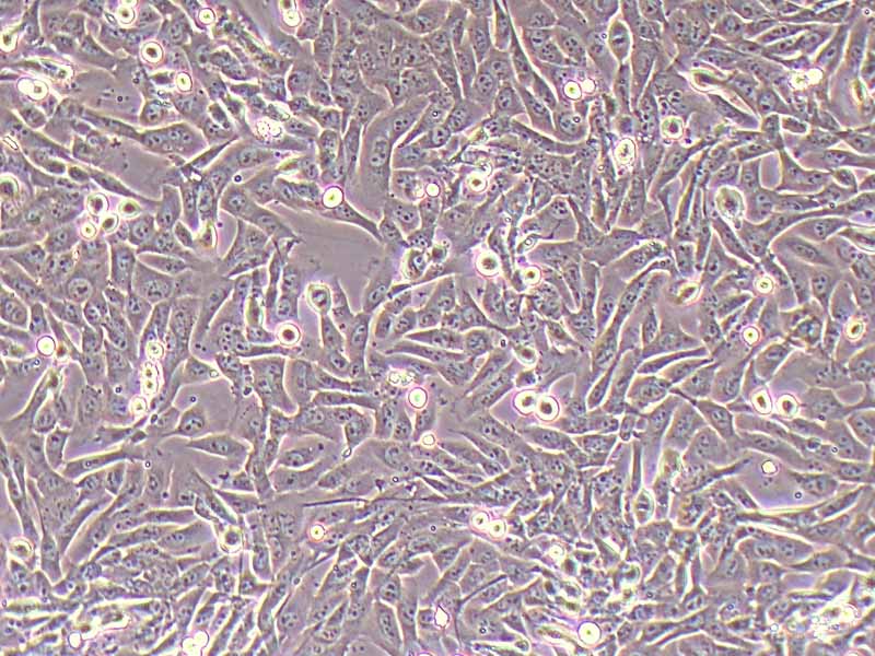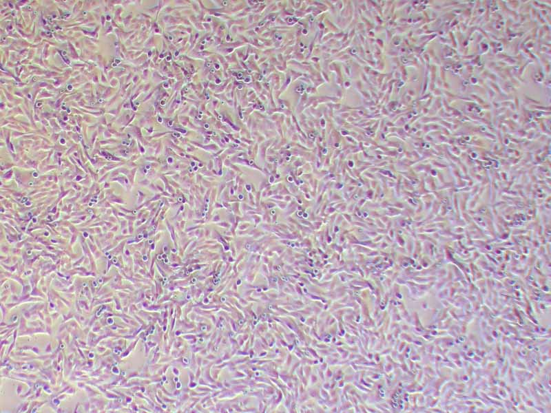 形态:上皮样细胞和成纤维样细胞均有,贴壁生长 培养基:90%MEM+10% FBS+PS