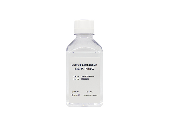EBSS 缓冲液,即 Earle’s Balanced salt Solution,Earle’s 平衡盐溶液,是细胞分离或培养中常用的磷酸盐缓冲液之一。主要成分为葡萄糖,NaHCO3,NaCl,KCl 和 NaH2PO4,具有维持渗透压、保持 pH 稳定、提供简单营养等作用,可用于体外实验中组织块、器官或细胞的漂洗、细胞或组织的运输、细胞培养用试剂的配制以及作为细胞计数的稀释液等。根据需要可添加钙、镁离子及酚红指示剂。