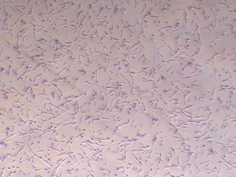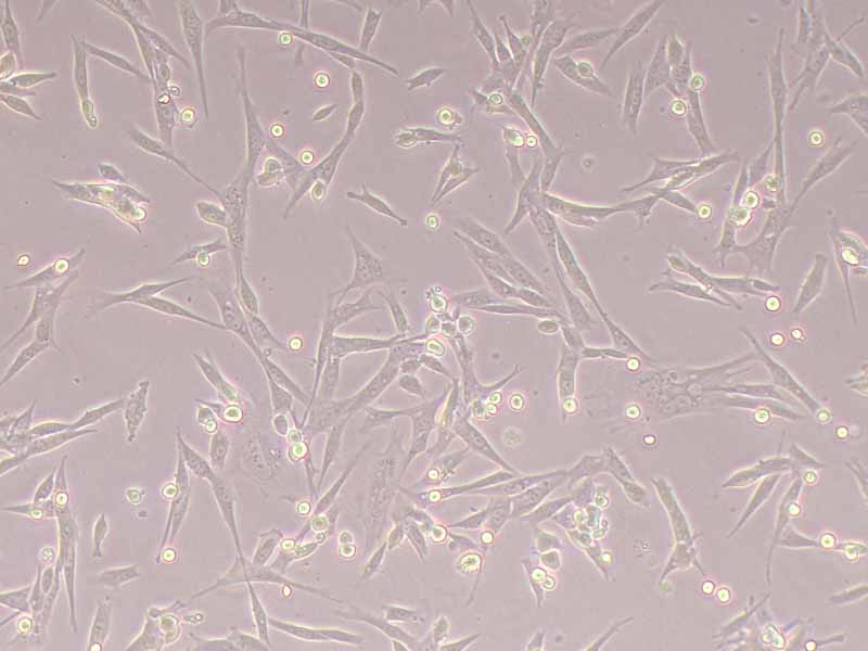 形态:成纤维细胞样,贴壁生长 传代比例:1:2至1:3,每周 2-3次
