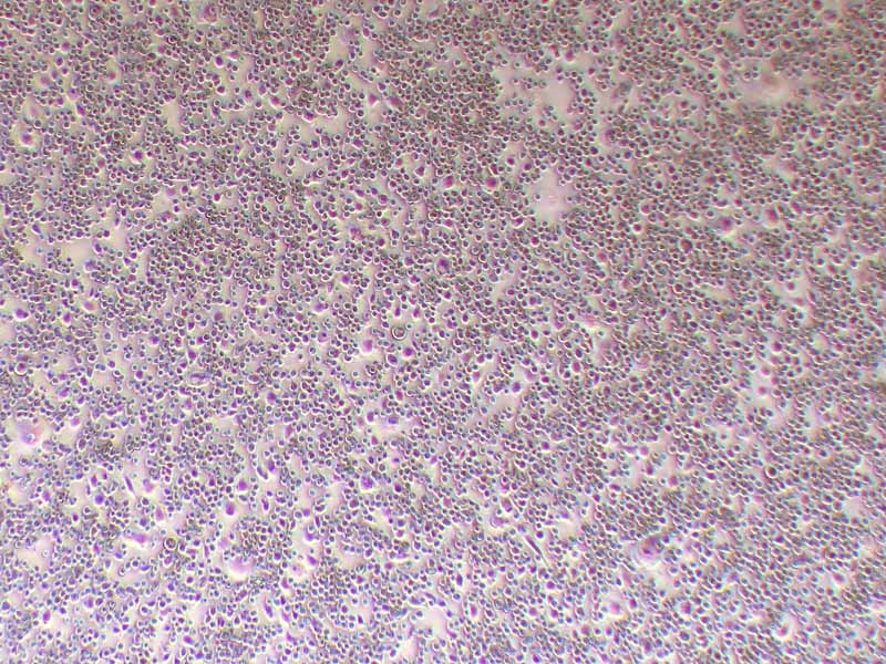 形态:巨噬细胞样,贴壁生长 培养基:MEM+10%FBS+PS