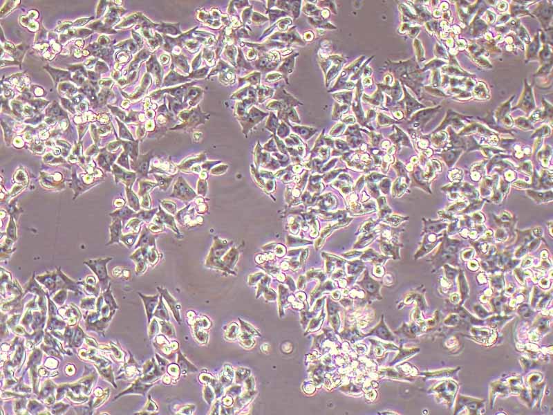 SK-CO-1是从一名65岁白人男性结直肠癌患者的大肠(结肠)中分离出来的具有上皮形态的细胞系。这种产品在癌症研究中有应用。这种产品在癌症研究中有应用。细胞超微结构特性包括微绒毛,微丝,带黑色颗粒和扩张脊的小线粒体,稀疏的粗面内质网,少量高尔基体,脂滴,多囊体,没有检测到病毒颗粒。 癌基因c-myc, N-myc,K-ras, H-ras, N-ras, myb, sis 和fos的表达呈阳性。