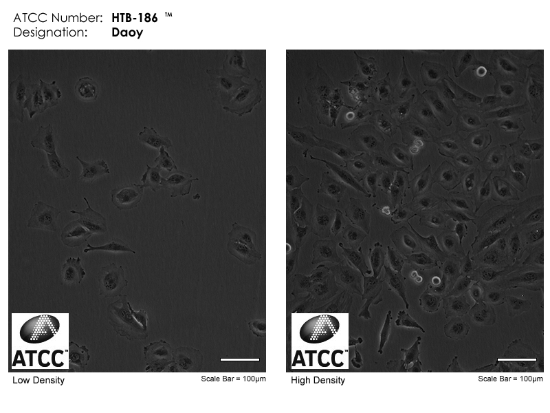 Daoy 是从一名患有结缔组织增生性小脑母细胞瘤的 4 岁白人男性的小脑中分离出来的多边形细胞。活检肿瘤取自后颅窝。细胞系 Daoy Med 可用于神经科学研究。