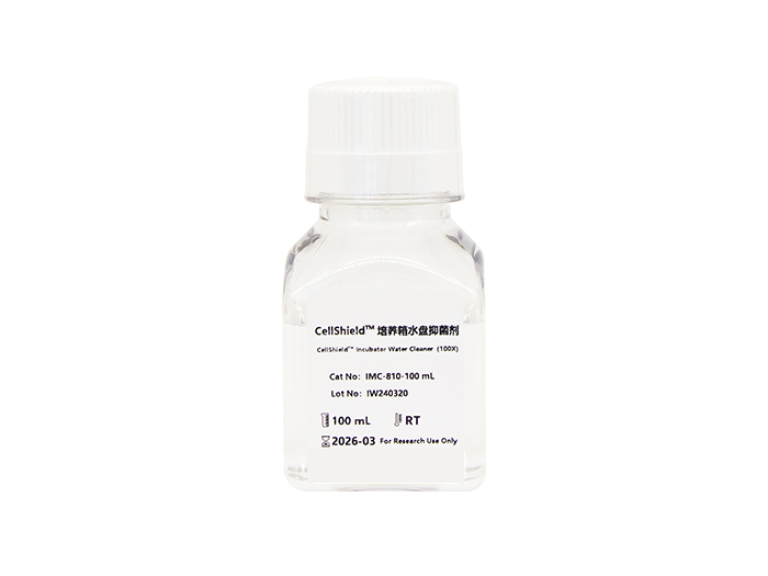 CellShieldTM培养箱水盘抑菌剂是一种广谱、高效、稳定、低毒的抑菌剂(antimicrobial)、杀菌剂(microbicide)和防腐剂(preservative),专门用于细胞培养室、常规实验室等中细胞培养箱等需要用水的培养箱中水盘或自带的储水容器内水体中细菌、真菌、支原体、藻类等微生物的抑制和清除,保持培养箱中水体的洁净,避免交叉污染。