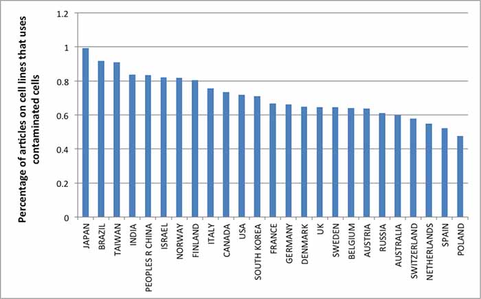对研究者团队研究结果的另一个反对意见可能是,交叉污染尤其发生在有新的或新兴的研究社区的地区,在这些地区,培训水平或使用测试设施的机会可能有限。例如,最近的一些出版物表明,中国的细胞系污染水平在25%和46%之间,并证明在中国开发的所有“新”细胞系中,85%实际上是海拉细胞。