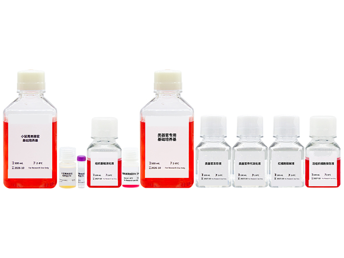 小鼠胃类器官原代分离培养套装是一款用于构建、维持培养及传代扩增小鼠胃组织来源类器官的完全培养基。该产品可以从小鼠胃组织快速生成胃类器官,极大程度维持了来源于体内胃组织的特征,优化了实验步骤,提高类器官构建效率。
