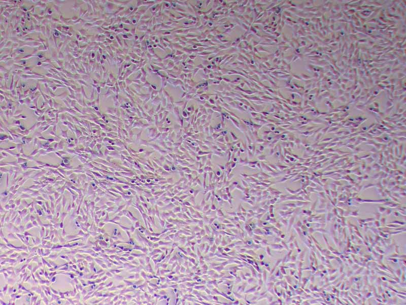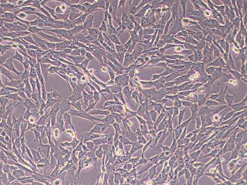 | 传代方法 | 1.弃去培养上清,用不含钙、镁离子的PBS润洗MOVAS细胞1-2次。 2.加1 mL消化液(0.25%Trypsin-0.02% EDTA)于培养瓶中,使消化液浸润所有细胞,弃去消化液,将培养瓶置于37℃培养箱中消化1 min,然后在显微镜下观察细胞消化情况,若细胞大部分变圆并脱落,迅速拿回操作台,轻敲几下培养瓶后加少量培养基终止消化。 3.按6-8 mL/瓶补加培养基,轻轻打匀后装入无菌离心管中,1000 rpm离心4 min,弃去上清液,补加1-2 mL培养液后吹匀。 4.将细胞悬液按1:2比例分到新的含8 mL培养基的新皿中或者瓶中,置于培养箱中培养。 | |||