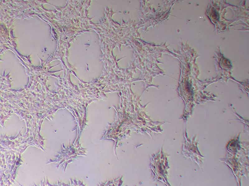 形态:上皮细胞样,贴壁生长 传代比例:1:2至1:3,每周2- 3次