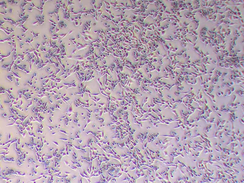 | 传代方法 | 1.弃去培养上清,用不含钙、镁离子的PBS润洗TC-1细胞1-2次。 2.加1 mL消化液(0.25%Trypsin-0.53mM EDTA)于培养瓶中,使消化液浸润所有细胞,弃去消化液,将培养瓶置于37℃培养箱中消化1 min,然后在显微镜下观察细胞消化情况,若细胞大部分变圆并脱落,迅速拿回操作台,轻敲几下培养瓶后加少量培养基终止消化。 3.按6-8 mL/瓶补加培养基,轻轻打匀后装入无菌离心管中,1000 rpm离心4 min,弃去上清液,补加1-2 mL培养液后吹匀。 4.将细胞悬液按1:2比例分到新的含8 mL培养基的新皿中或者瓶中,置于培养箱中培养。 | |||